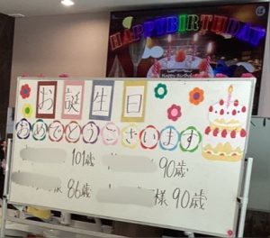2025.03.22 お祝い 2ヶ月に1度のペースで行われる誕生会は 担当職員が飾り付けまで綺麗に準備をしています。 可愛く飾ったホワイトボードをバックに 皆さんで写真を撮っています😊 誕生日プレゼントも利用者様お一人お一人に 合うものを選んでお渡ししています。 喜んで貰えますように🍀 一覧へ戻る